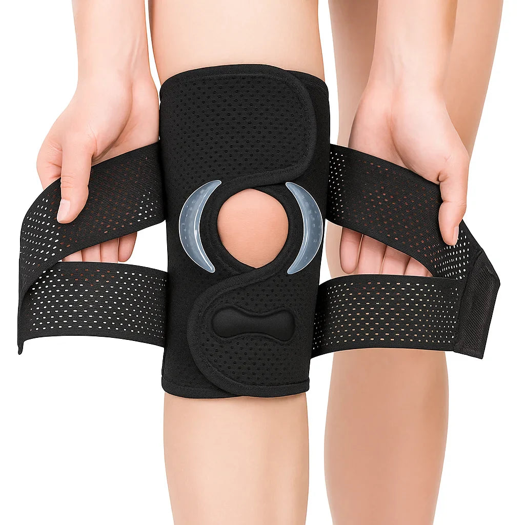 • Almofadas macias laterais que protegem e centralizam a patela