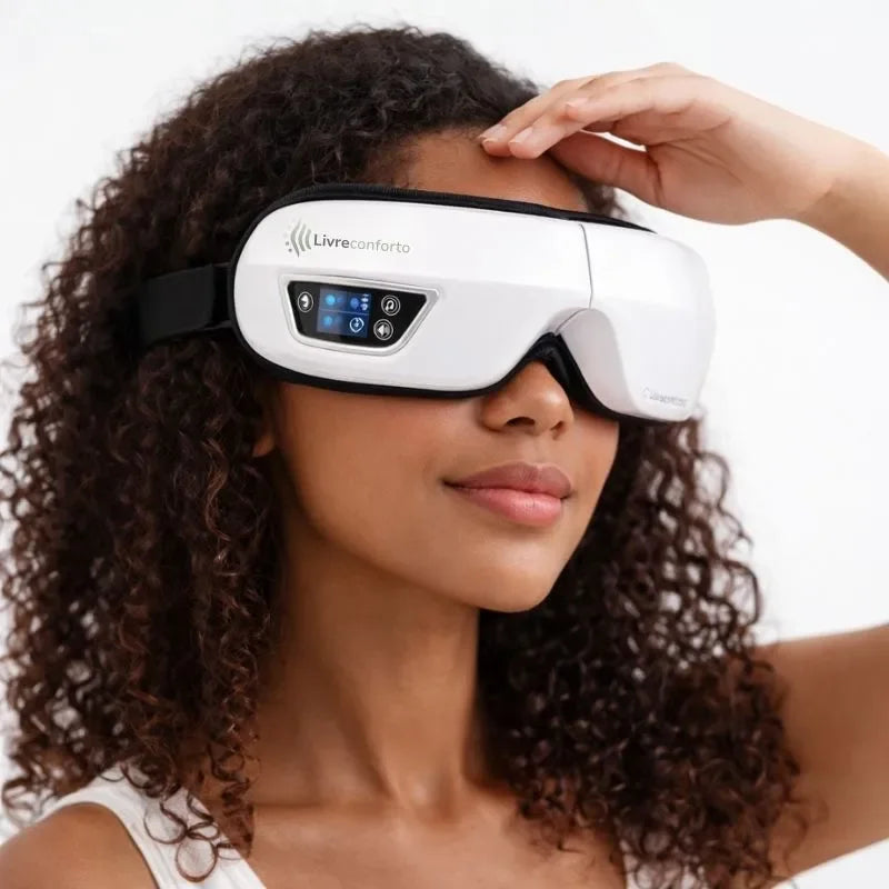 O Massageador Ocular Inteligente foi projetado para aliviar tensão, reduzir fadiga ocular e melhorar a qualidade do sono.