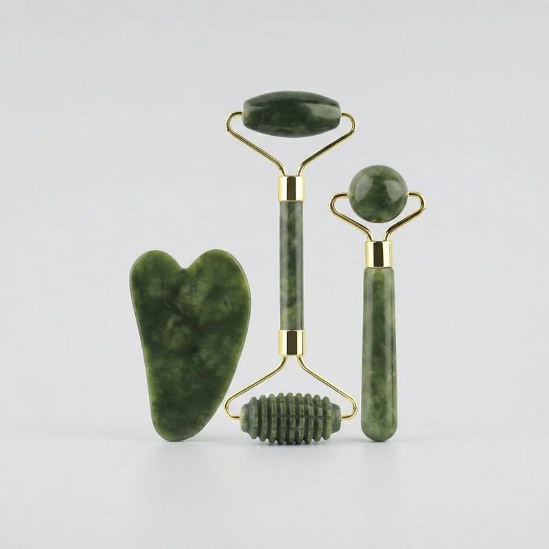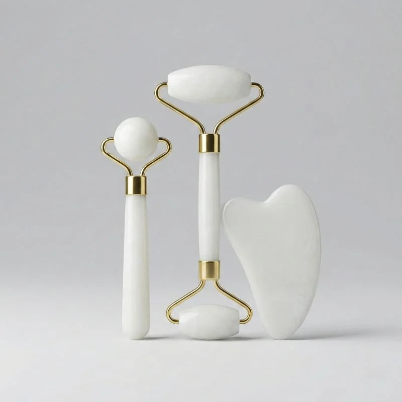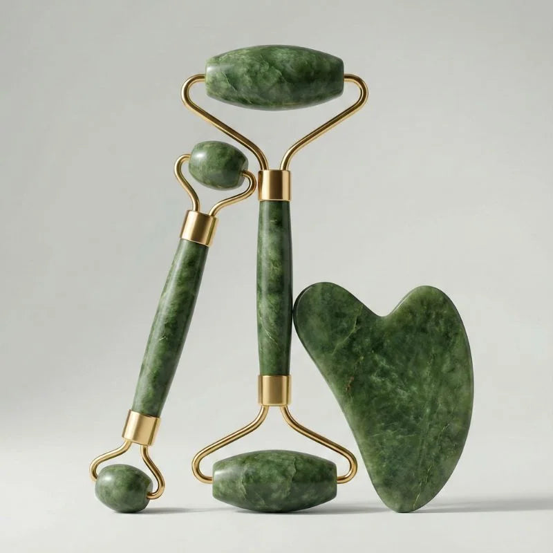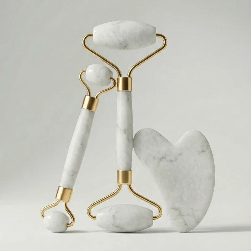 Kit Rolo Massageador Facial 3 em 1 + Gua Sha | Drenagem, Contorno e Revitalização da Pele